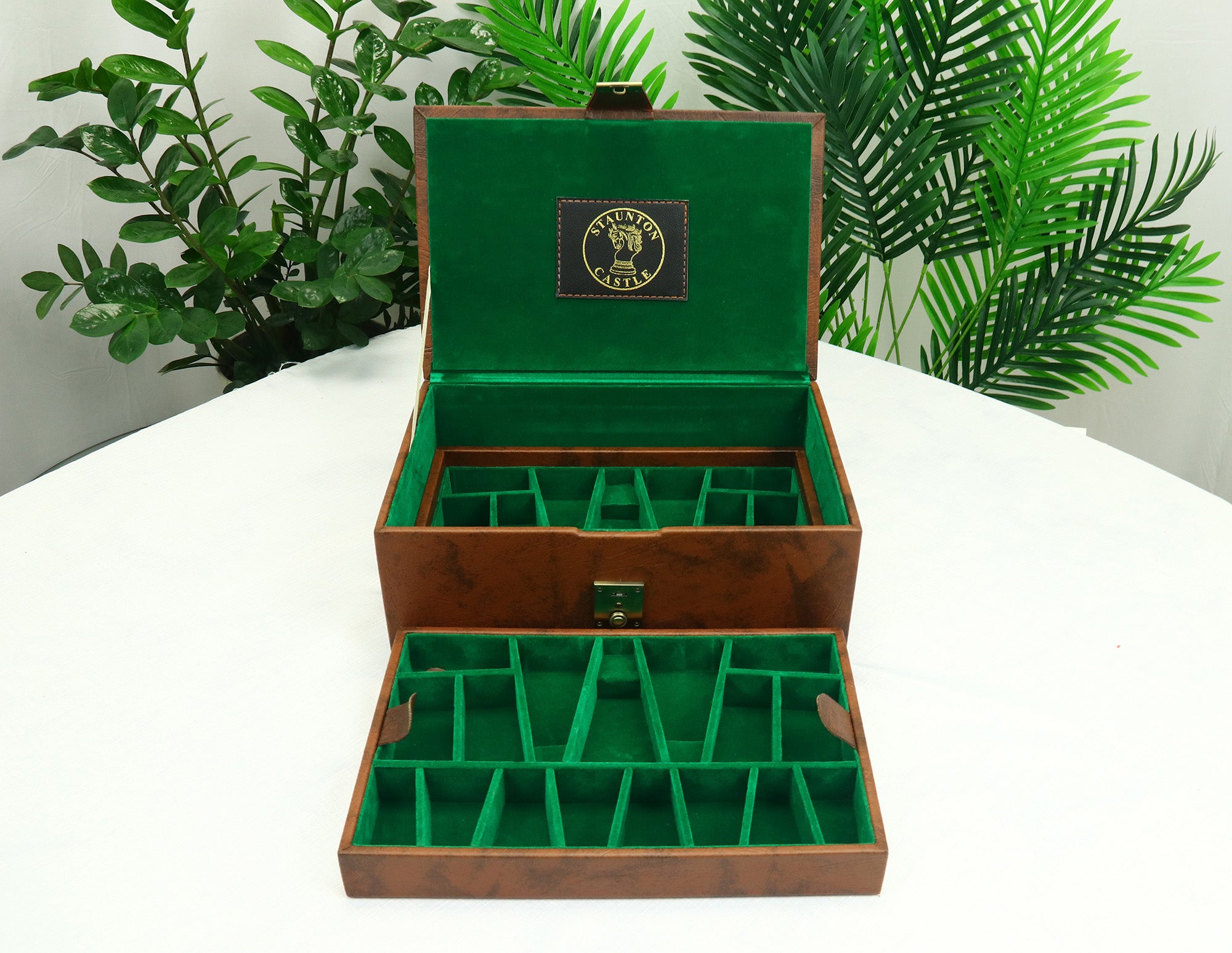Luxury Leatherette Presentation Box with Straight Compartments for Chess Set (15" x 13" x 6")