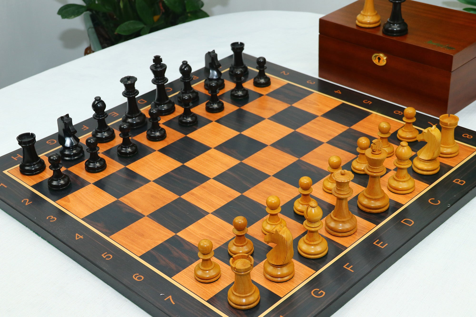 Chess Board with 2" Square size in Ebony/Antiqued Box wood Look with Notations