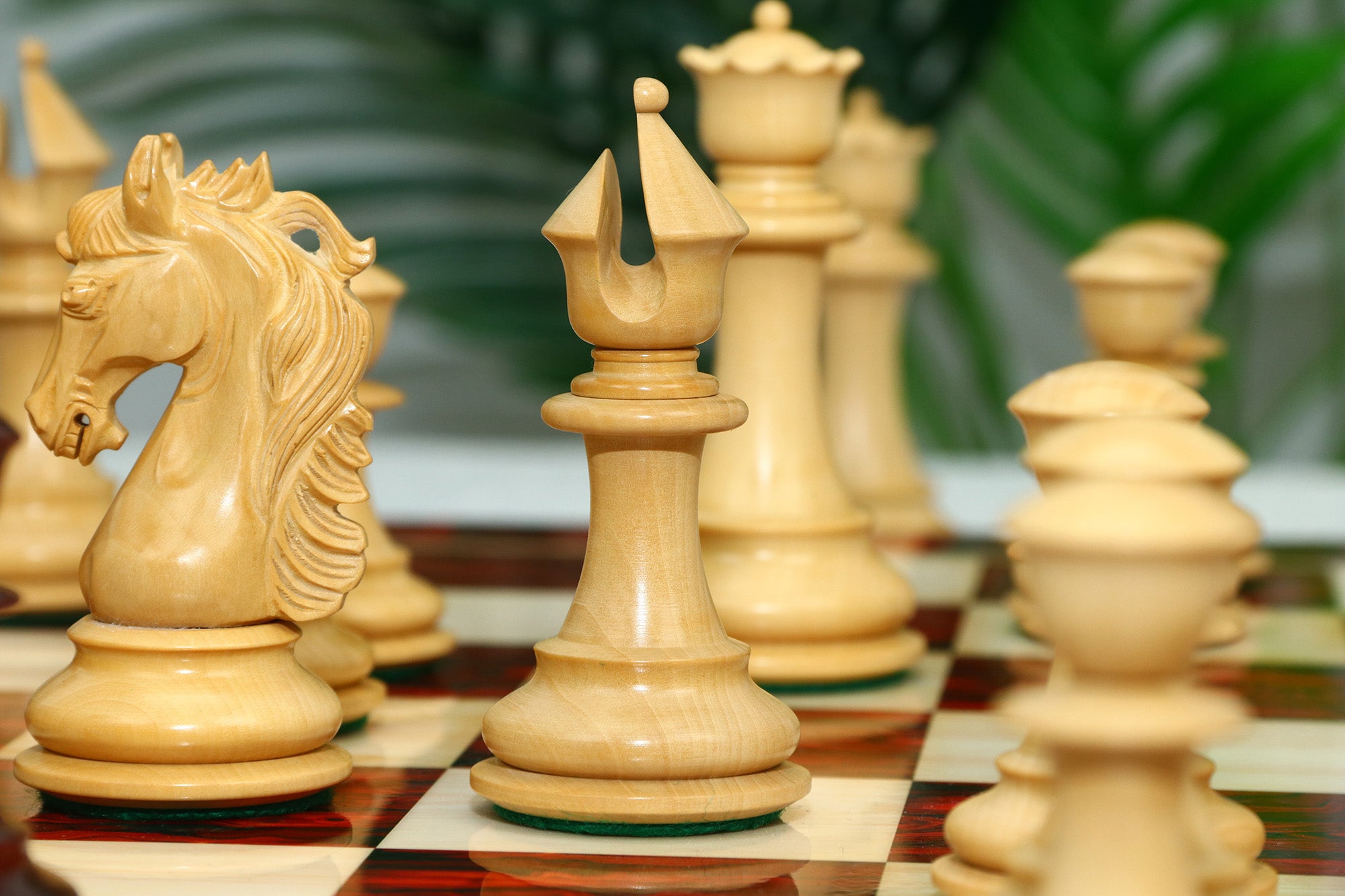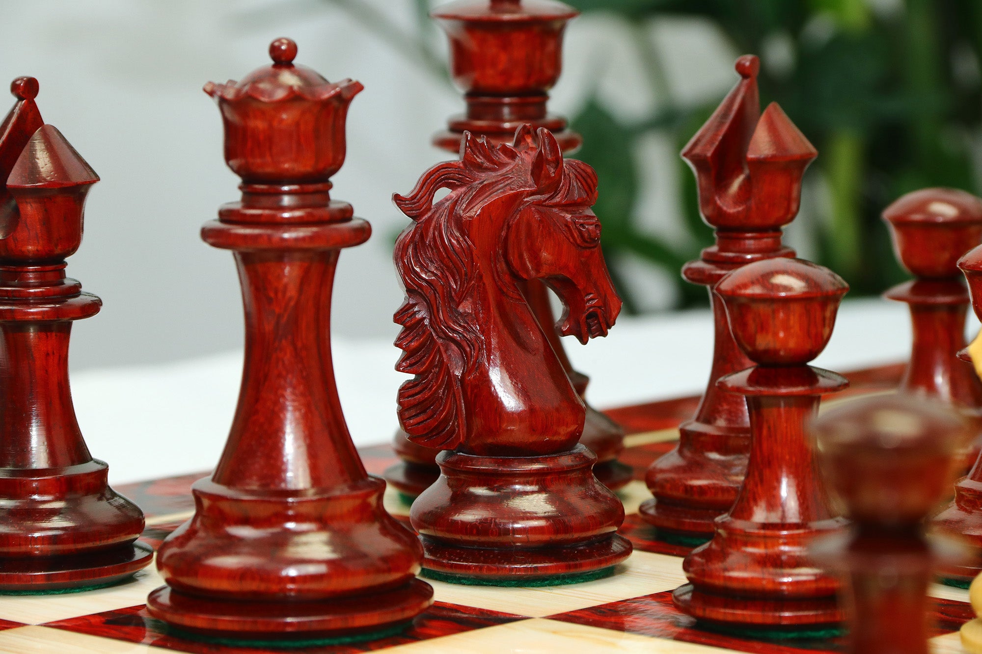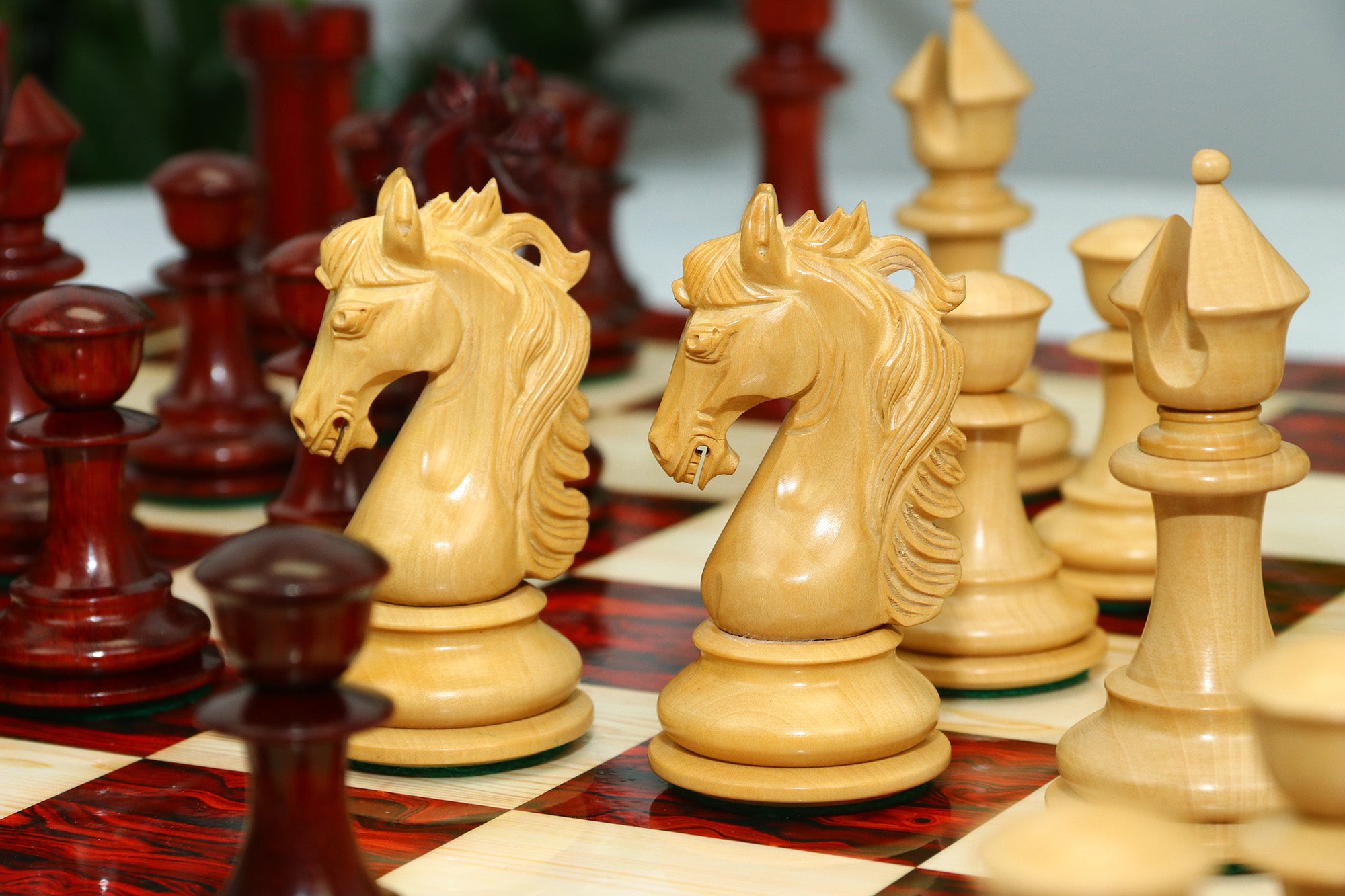 The standout feature of this collection is the beautifully carved Knight. With its intricate curly mane and fine sculptural detail, the Knight elevates the entire design, making this set truly unique among traditional Staunton patterns. This collector-grade artistry makes it a perfect choice for those who value both beauty and precision.