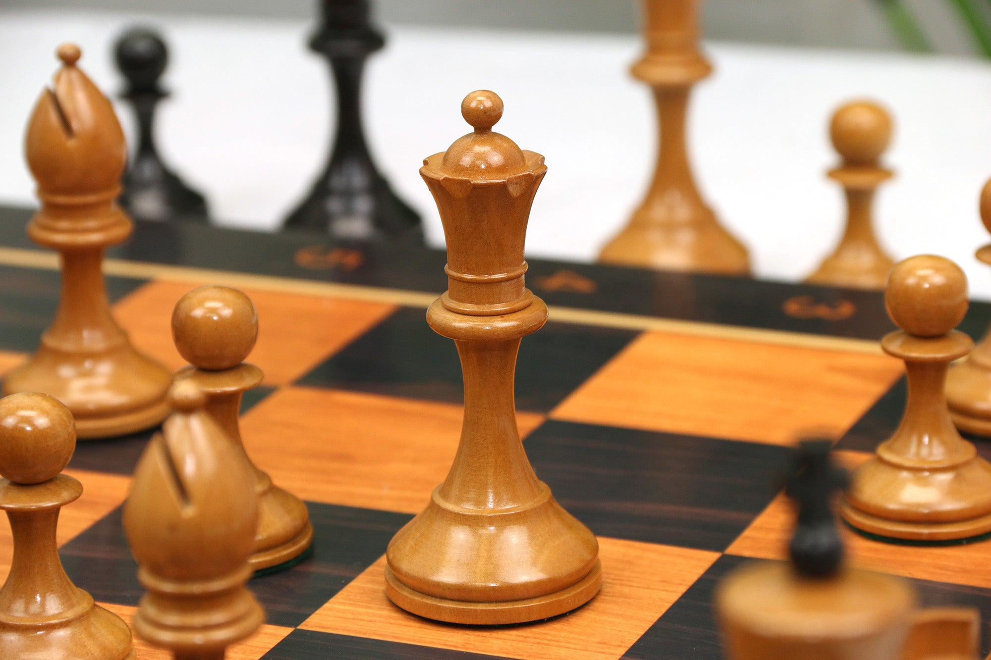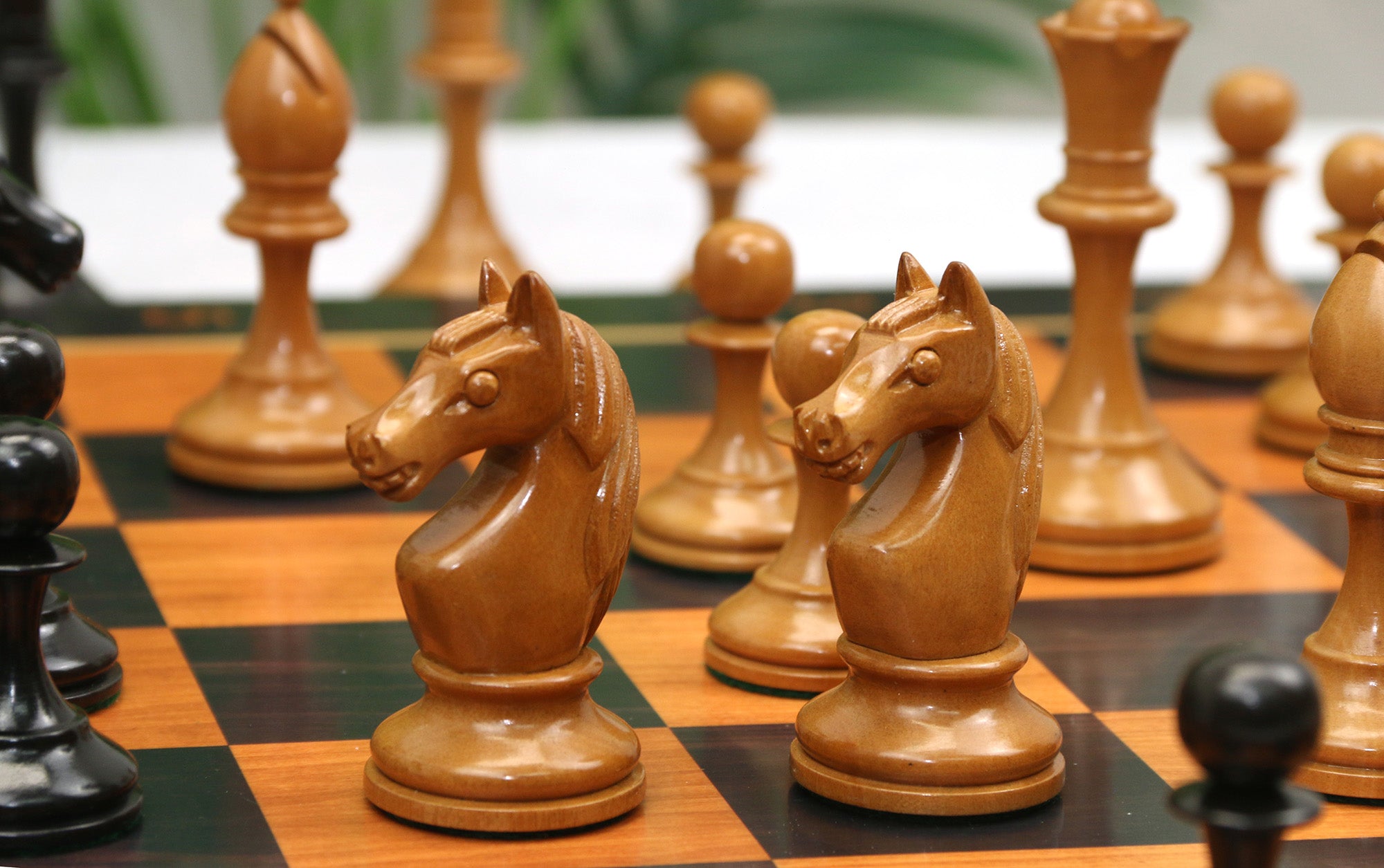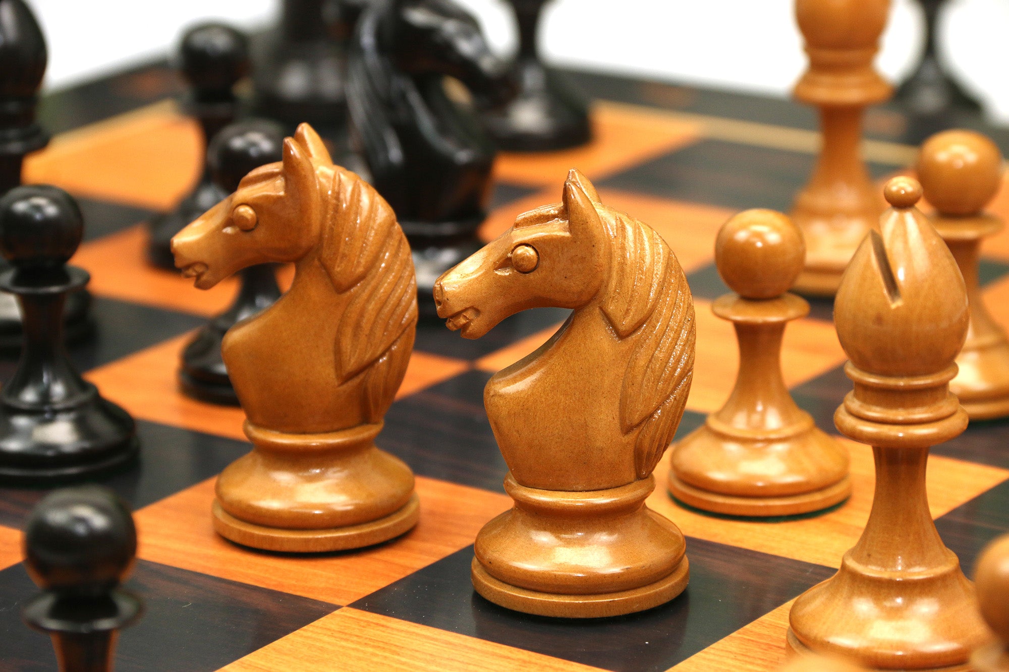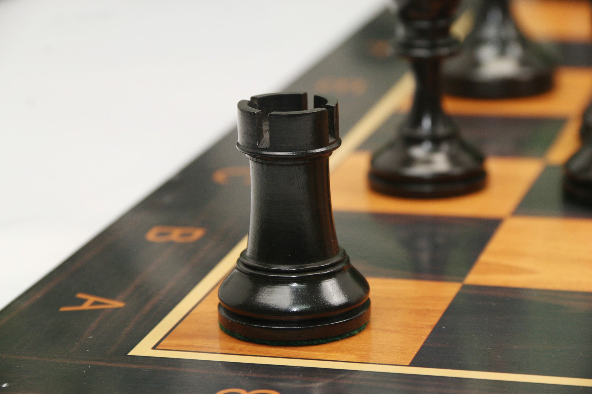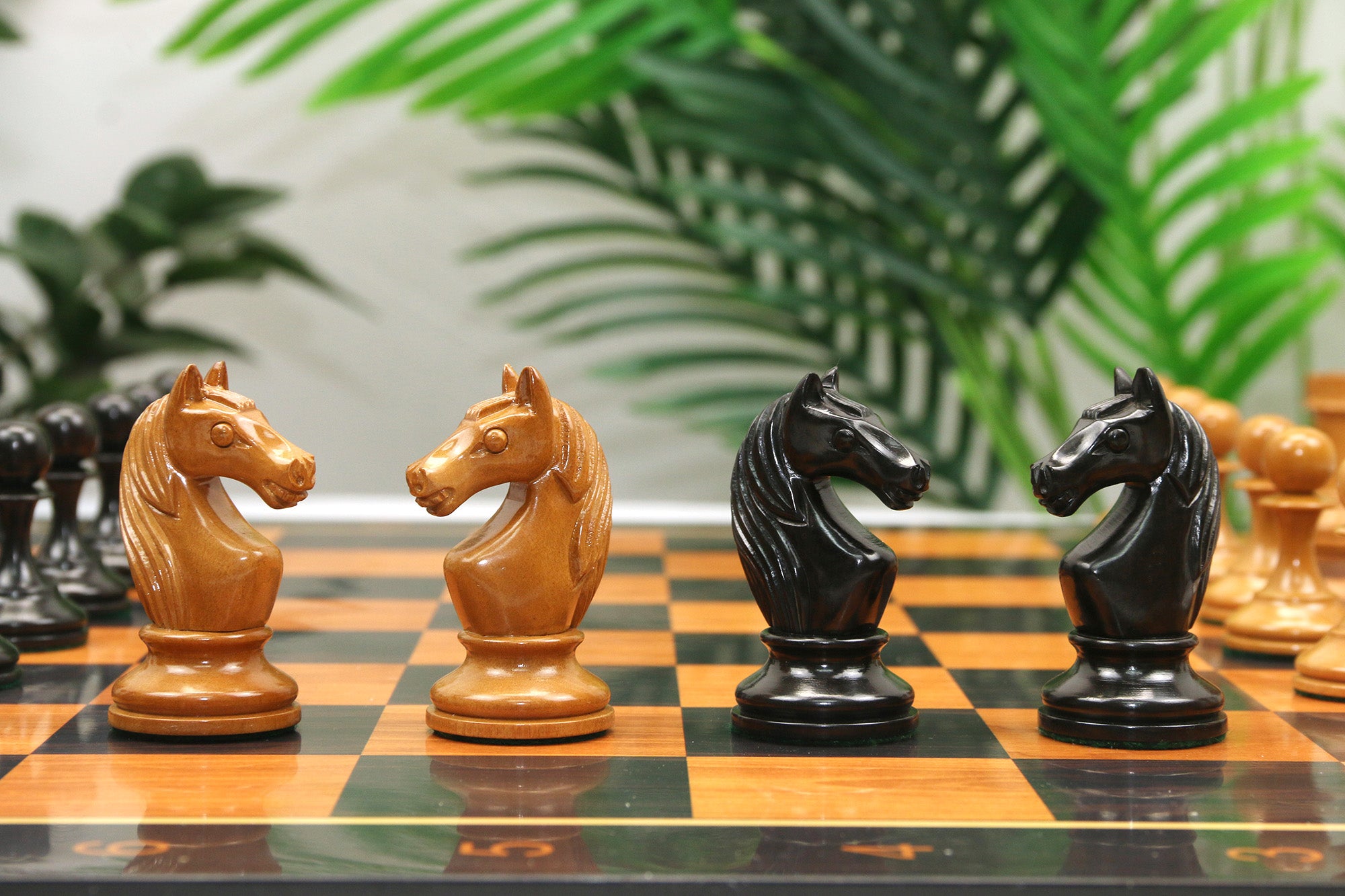 Crafted in antiqued boxwood chess pieces for the light army and premium ebony wood chess pieces for the dark, the set evokes the dignified patina and gravitas of early 20th-century tournament chess sets while maintaining exceptional balance and playability for modern use.