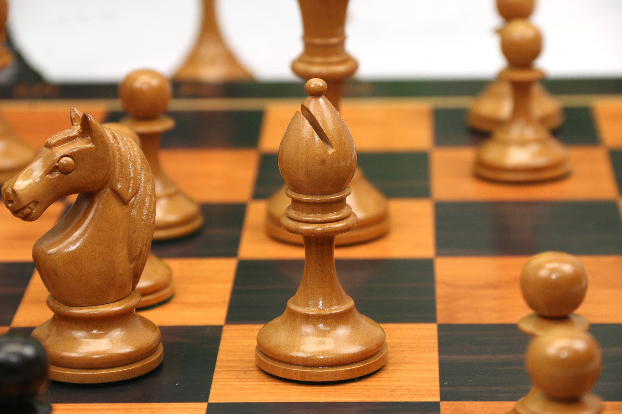 The bishops showcase a sharply cut miter, a unique and instantly recognizable feature found on original Moscow 1925 chess tournament pieces.