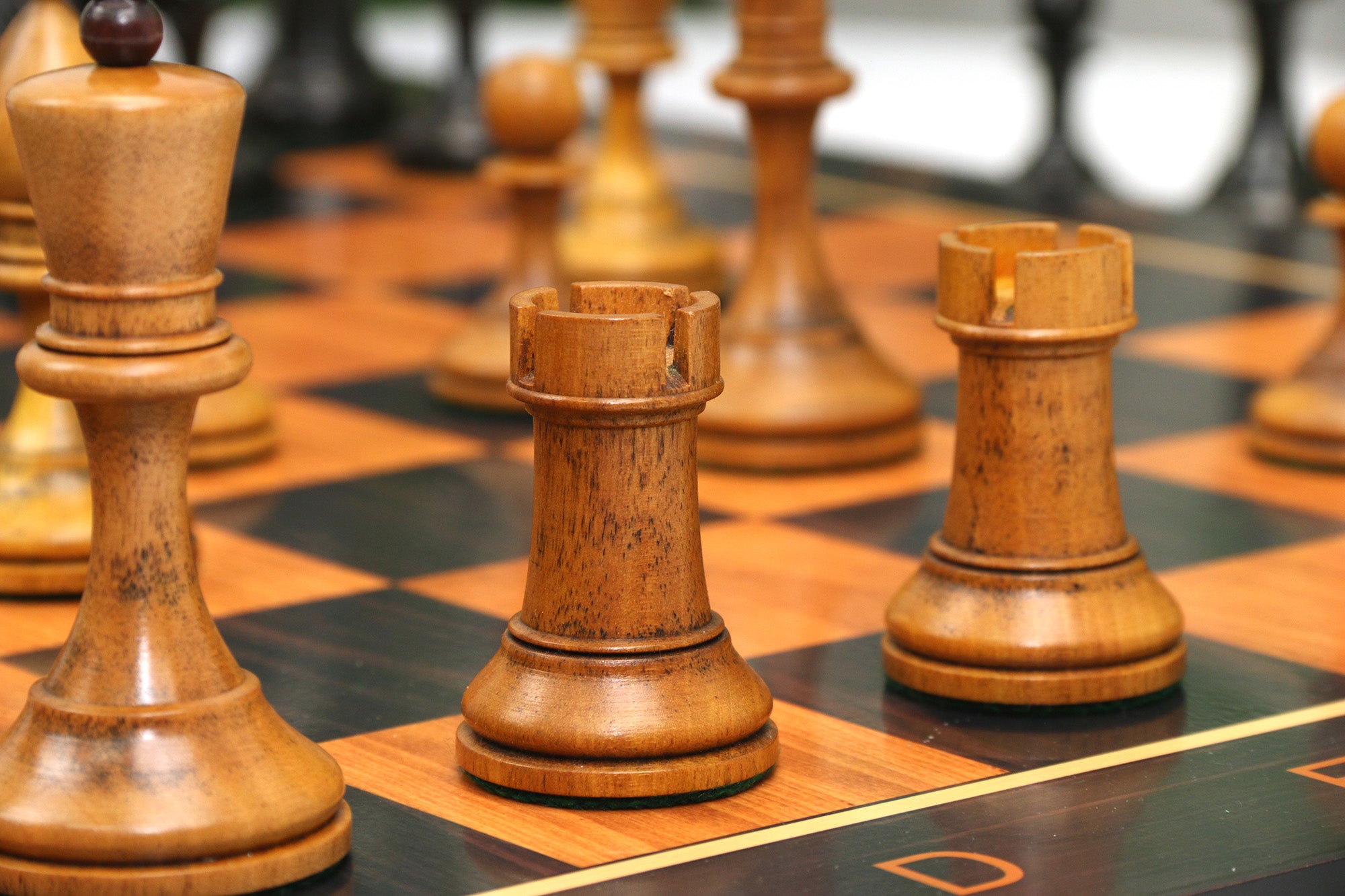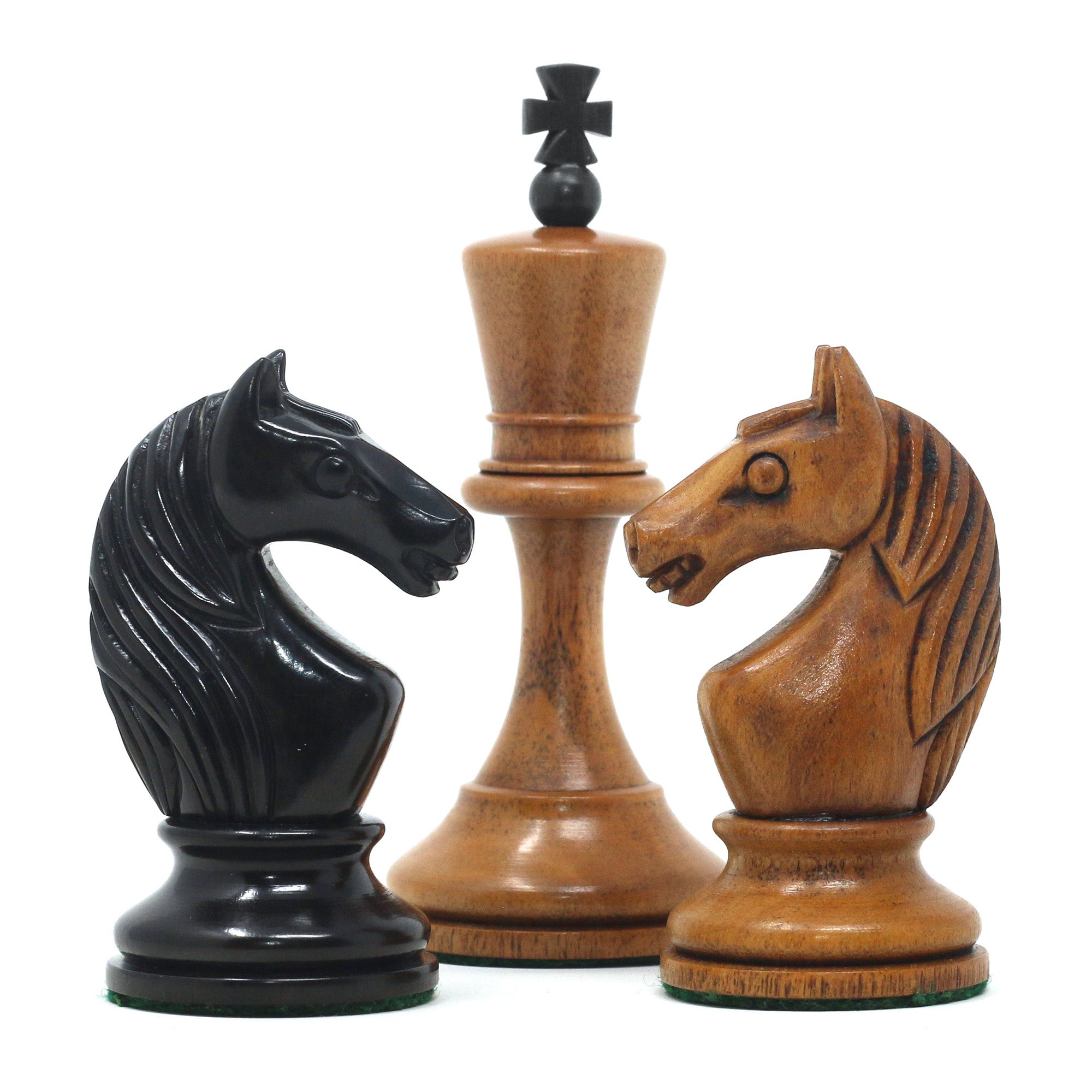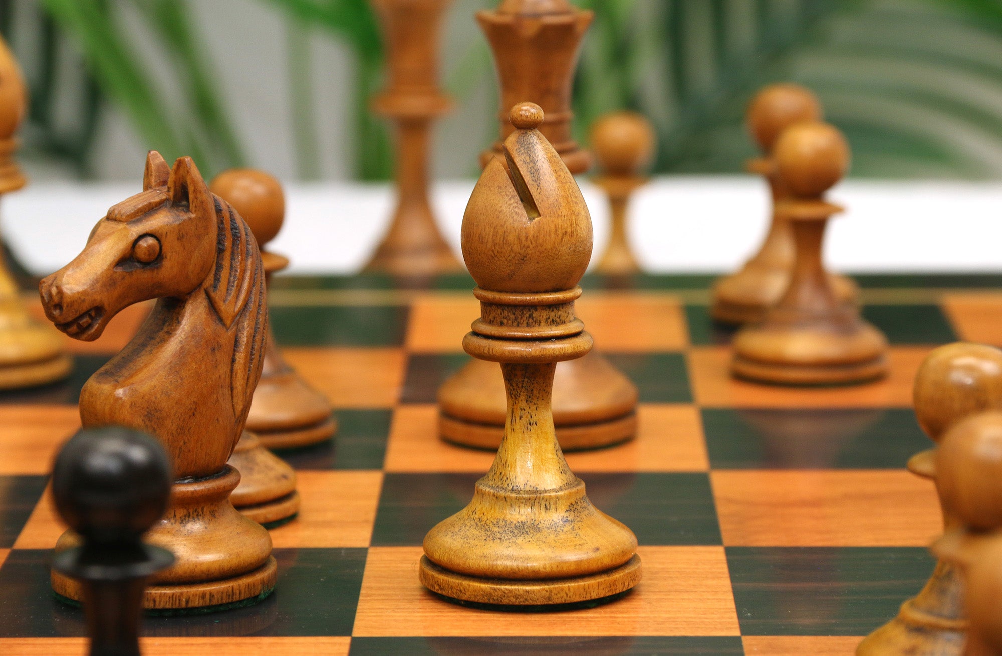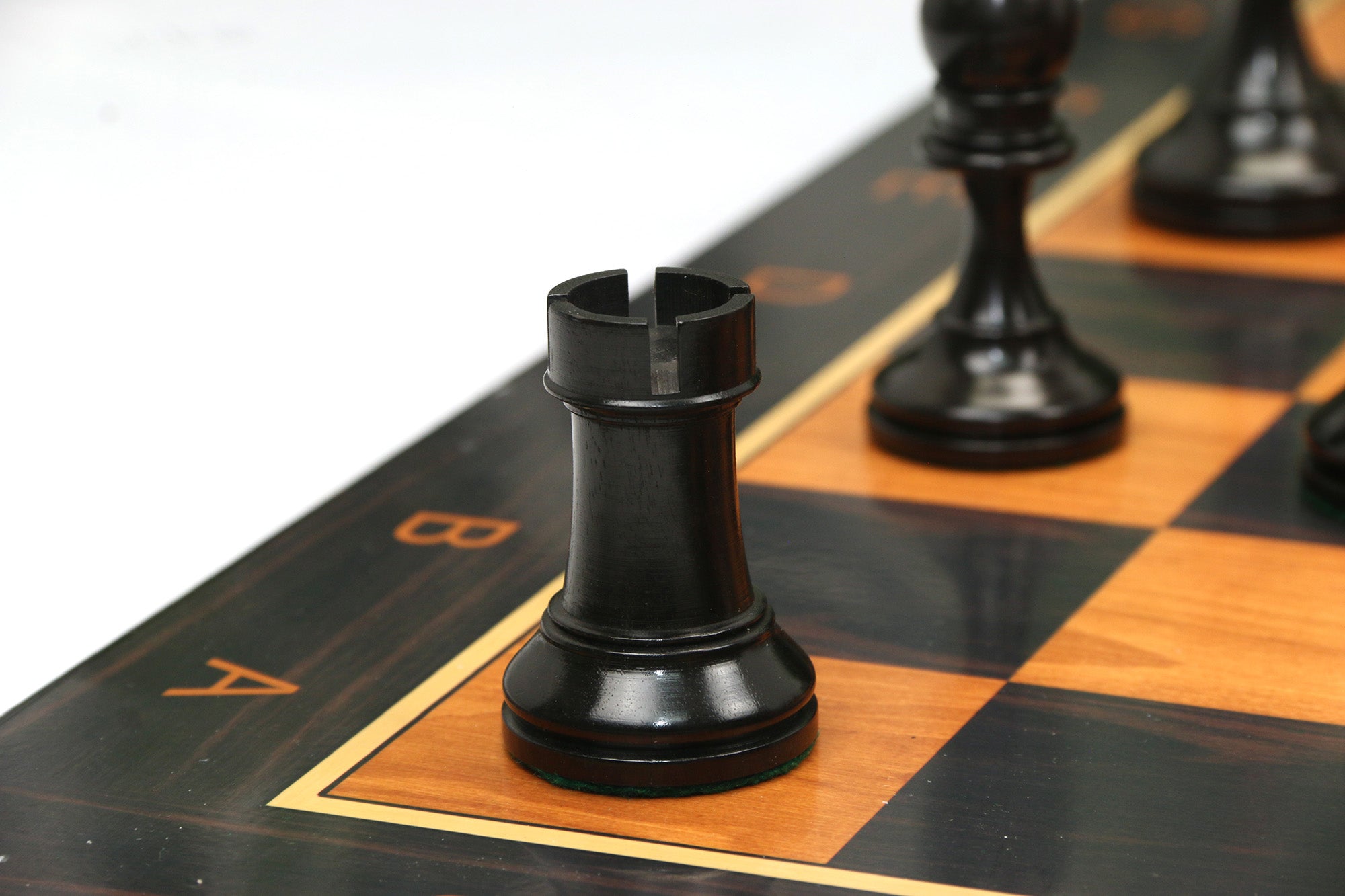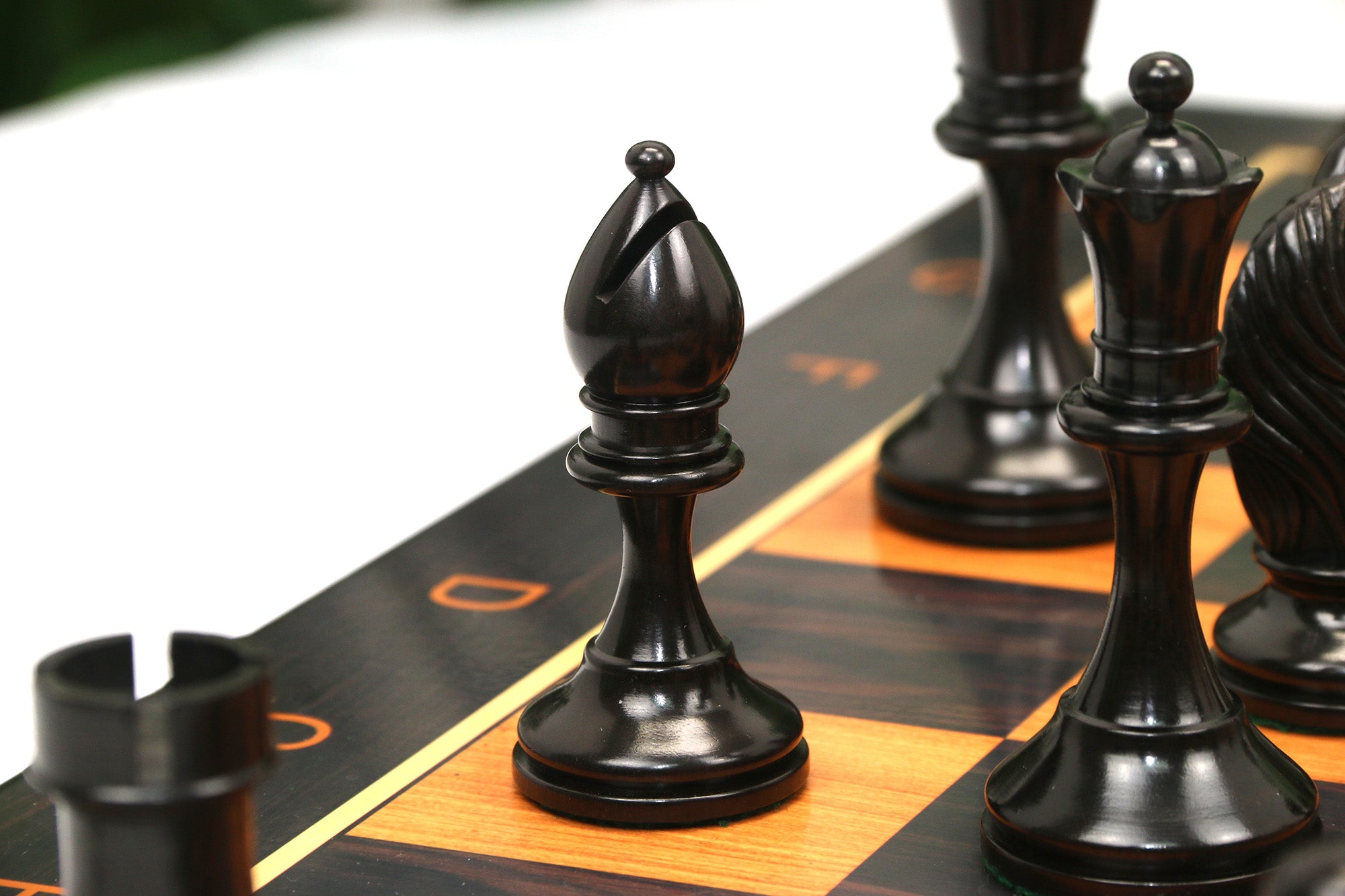 Crafted in antiqued boxwood chess pieces for the light army and premium ebony wood chess pieces for the dark, the set evokes the dignified patina and gravitas of early 20th-century tournament chess sets while maintaining exceptional balance and playability for modern use.