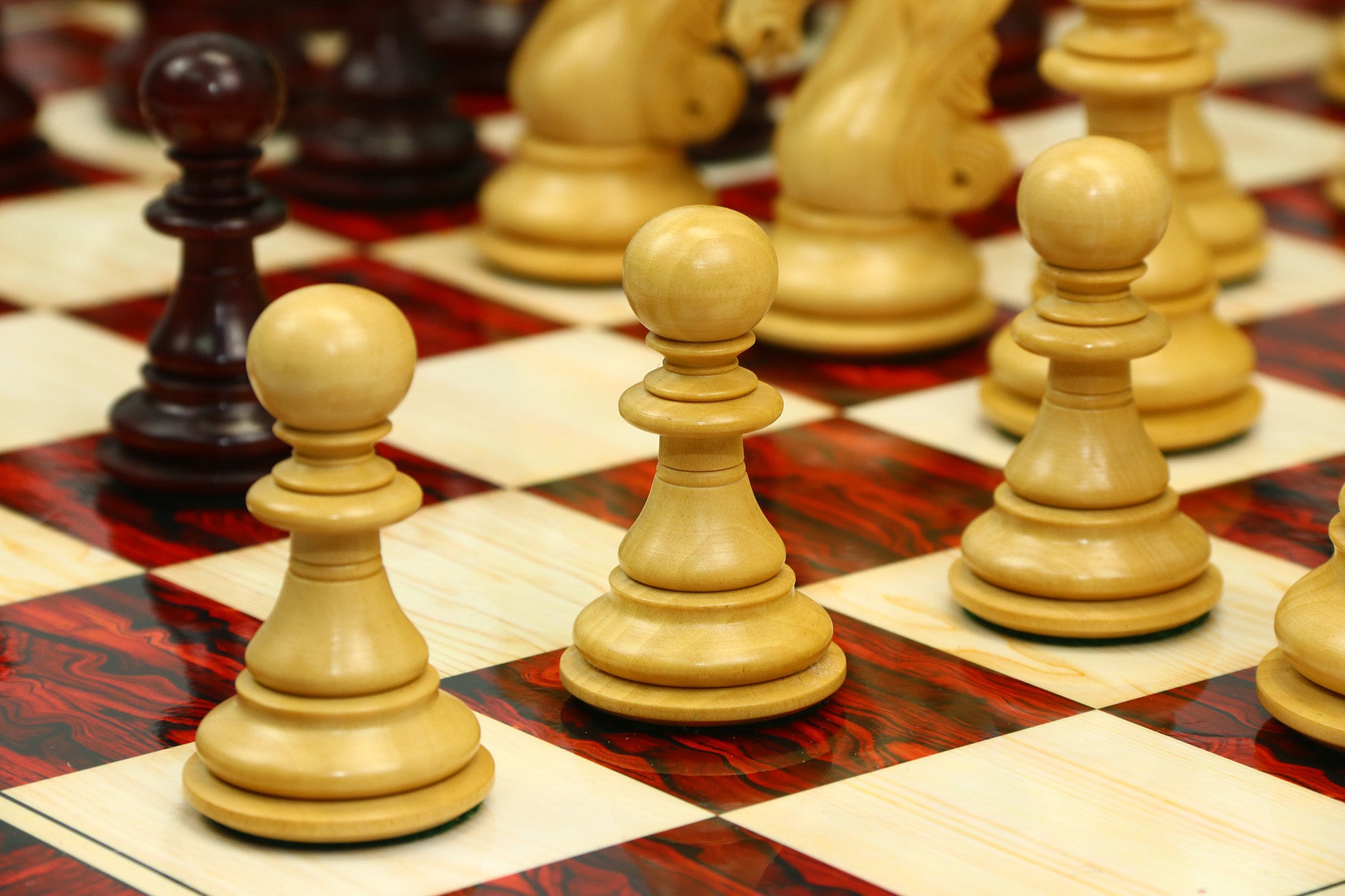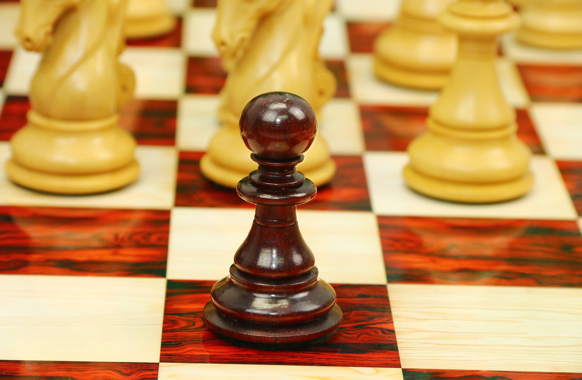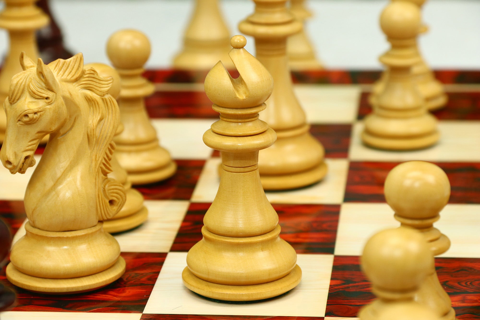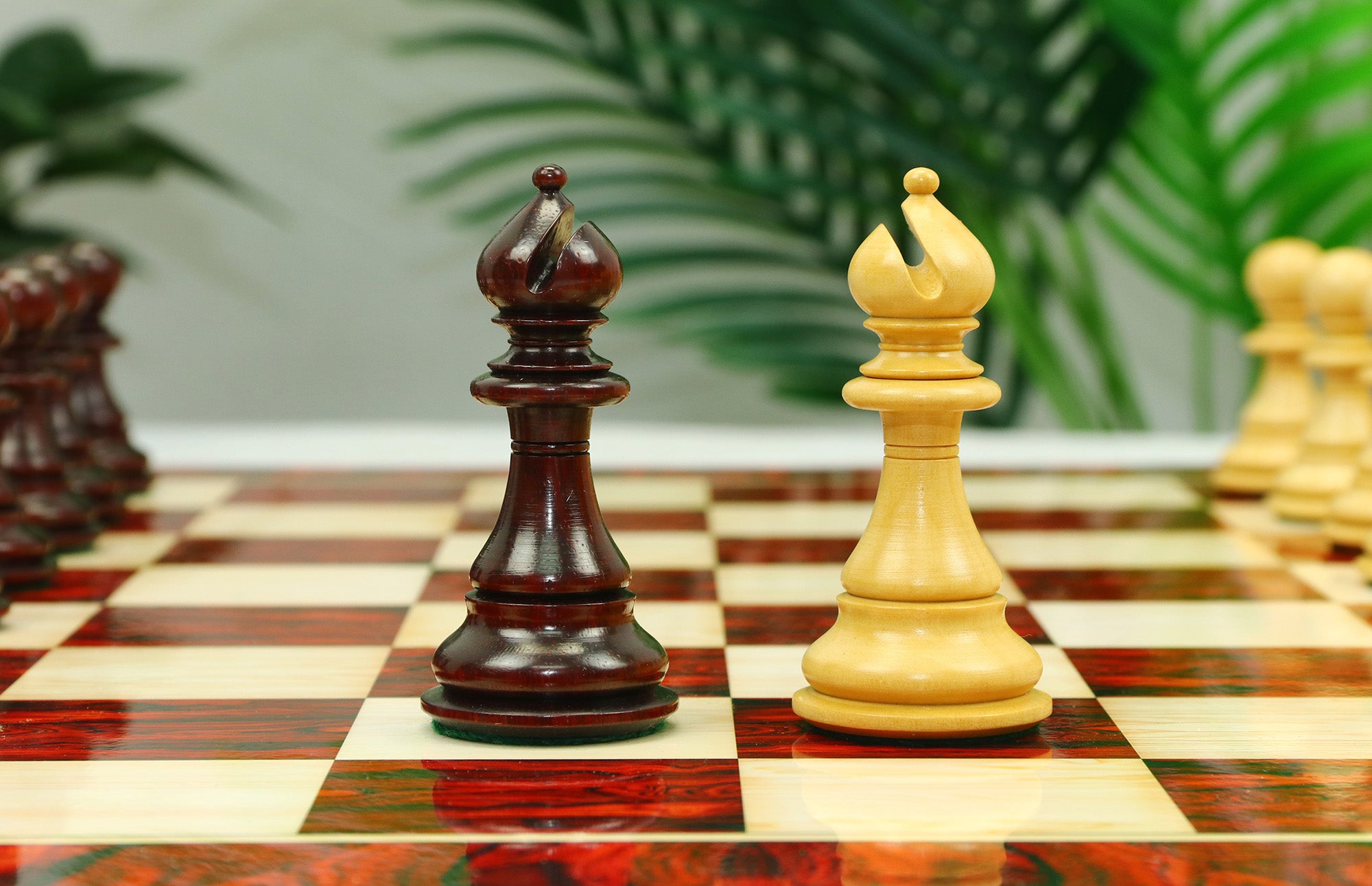 The chess pieces are crafted from high-grade African Padouk and premium Boxwood.