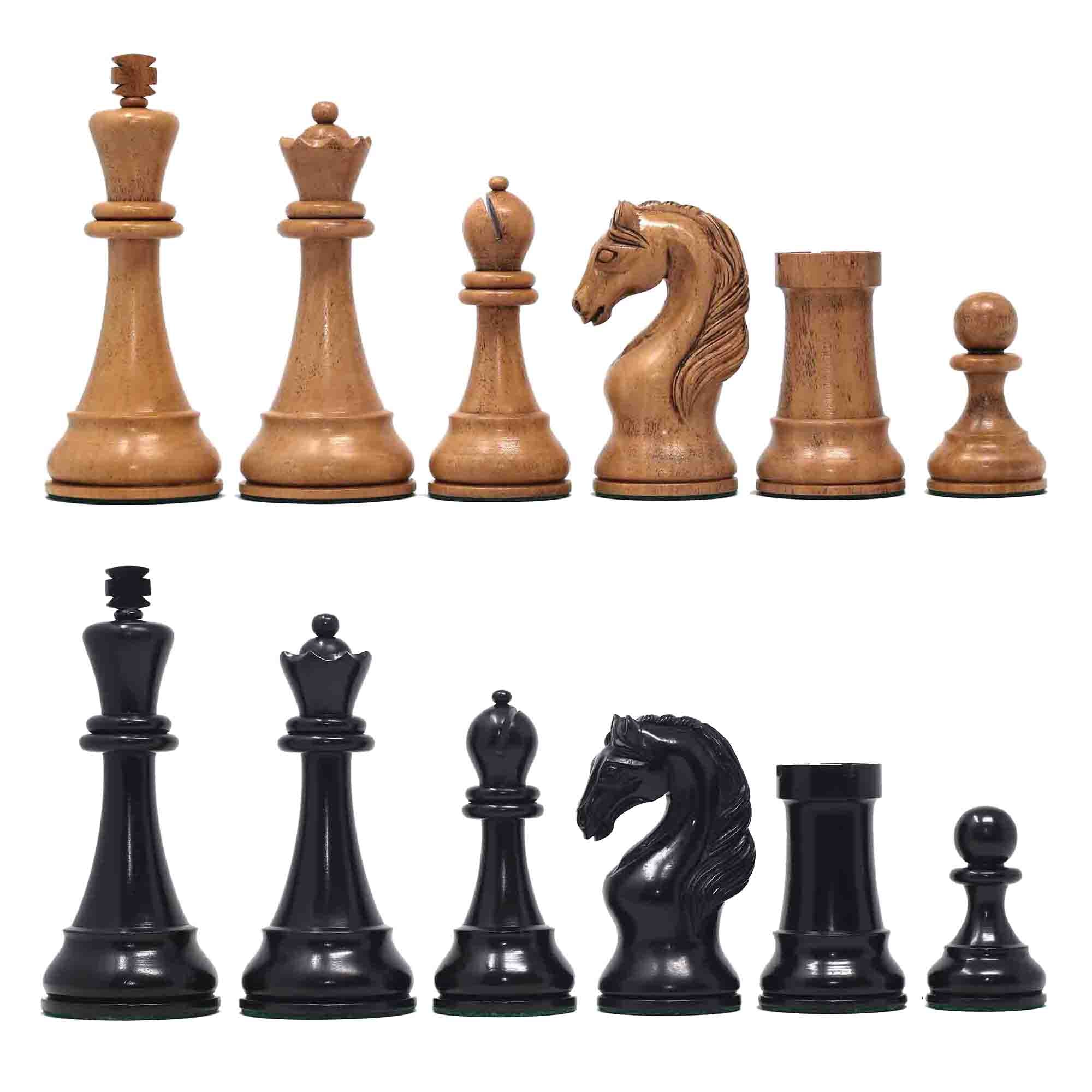 The Herman Steiner Series Luxury Chess Pieces - 5.0" King Staunton Castle is proud to present its most curated, blend with all the creativity, The Historical Steiner Series Chess set. We dedicated this chess set to the great Chess Player Mr. Herman Steiner who used this same designed chess sets in World’s famous chess tournaments. Brief History of this chess set: Steiner played three challenge matches against Reuben Fine, one of the world's top players. Fine won all three matches: by 5½–4½ at New York 1932, by 3½–½ at Washington, D.C. 1944, and by 5–1 at Los Angeles 1947. 2:18Steiner at Groningen 1946 One of his major international wins was at the 1946 London Victory Invitational, the first significant European tournament held after the end of World War II. Steiner challenged Arnold Denker in 1946 to a match for the United States Chess Championship at Los Angeles, but lost 6–4. In 1948 Steiner won the United States Chess Championship at South Fallsburg, New York, ahead of Isaac Kashdan. Steiner was a member of the United States Chess Federation's teams sent abroad to the Chess Olympiads in The Hague 1928, Hamburg 1930, Prague 1931 and Dubrovnik 1950. As reigning U.S. champion he captained the 1950 team. In the historic 1945 USA–USSR radio match between teams from the US and the USSR, Steiner was the only U.S. player to achieve a plus score. Although the American team including Reuben Fine, Samuel Reshevsky, Arnold Denker, and Isaac Kashdan, was badly beaten, Steiner scored 1½–½ against Igor Bondarevsky. Steiner was very active as a player in West Coast tournaments, winning the only two California Open tournaments he entered in 1954 and 1955, and winning the California State Championship in 1953 and 1954. He was defending his State Championship in Los Angeles in 1955, when after finishing his fifth-round game (a 62-move draw against William Addison) he felt unwell and his afternoon game was postponed. About 2 hours later around 9:30 pm, Steiner died practically instantaneously of a massive coronary occlusion while being attended by a physician. By agreement of the players, the 1955 California State Championship tournament was canceled. It features a 5.0" King with a 2.0" diameter base. All the Chess pieces are hand carved by our skilled Artisans. The chess pieces are crafted out of the highest-grade finest woods and are heavily weighted with luxurious billiard cloth base pads and a beautiful finish. The looks and the quality is unbeatable. The Master Craftsman Mandeep Saggu is the first Originator of this Chess Set, and reproduced this luxury chess set. Like our other collections of Chess sets, The Steiner Signature Series exemplifies a perfect combination of its unique beauty and range of capabilities. It has been designed to withstand the rigors of best performance while maintaining a magnificence which has become the hallmark of Staunton Castle chess set. The design, idea, quality and craftsmanship of this set is unique and unequaled by any set of Chessmen in its price range. Nothing even comes closer to this! The Chessmen are freshly new and each set consists of 34 Chessmen, including four Queens, a standard that was introduced by none other than Staunton Castle. YOUR PURCHASE WILL INCLUDE THIS:- - Certificate of Authenticity by Staunton castle - Individual Production Number Nothing ever comes closer to this beauty! Staunton Castle also provides the Certificate of Authenticity. It is an original manufacturer's memorable production number. Last but not the least, The Herman Steiner Series Chess set is packed with a number of qualities. Grab this chess set now. |