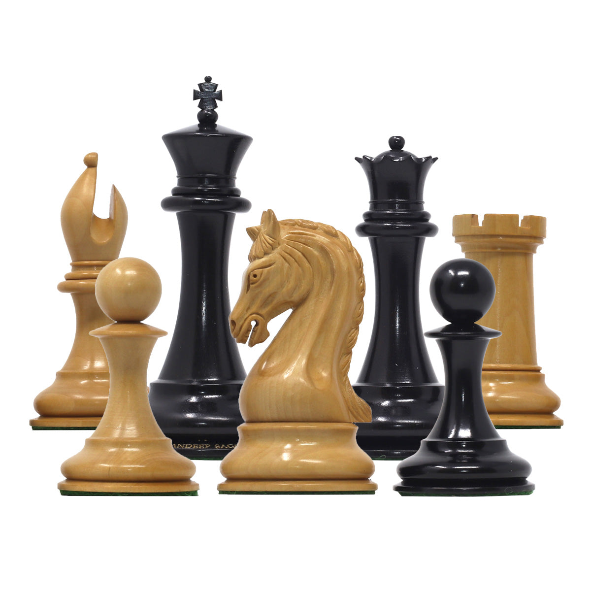 The Legendary Artisan Series Especially Designed for Collectors and Admirers It is a replicate from 40,000-year-old Mammoth Ivory, chess set, which is registered by Nathaniel Cooke and originated by Jaques of London in 1849. To treat you special, Staunton Castle is offering its best reproduce series. Earlier the Mammoth Ivory chess sets was the signature series. But there is no doubt that it cost too expensive. Staunton castle introduce this expensive set-in boxwood and ebony. The identical mirror image which makes you think twice. It features a 4.4" King with a 2.0" diameter base. The Fine Chess pieces are hand carved by our master artisans and crafted out of the finest materials. The pieces have an excellent feel which give you a sense of satisfaction. The army of 34 chess pieces are crafted very delicately with Ebony and boxwood. The contrast is astonishing and pieces are superbly designed. The Chess pieces are presented so natural. A standard to maintain by none other than Staunton Castle. The Legendary Artisan Luxury Chess Sets always comes with Certificate of Authenticity. An expensive Ivory set in Superior boxwood and Ebony wood. Make it yours, buy this now as we have very limited stock. |