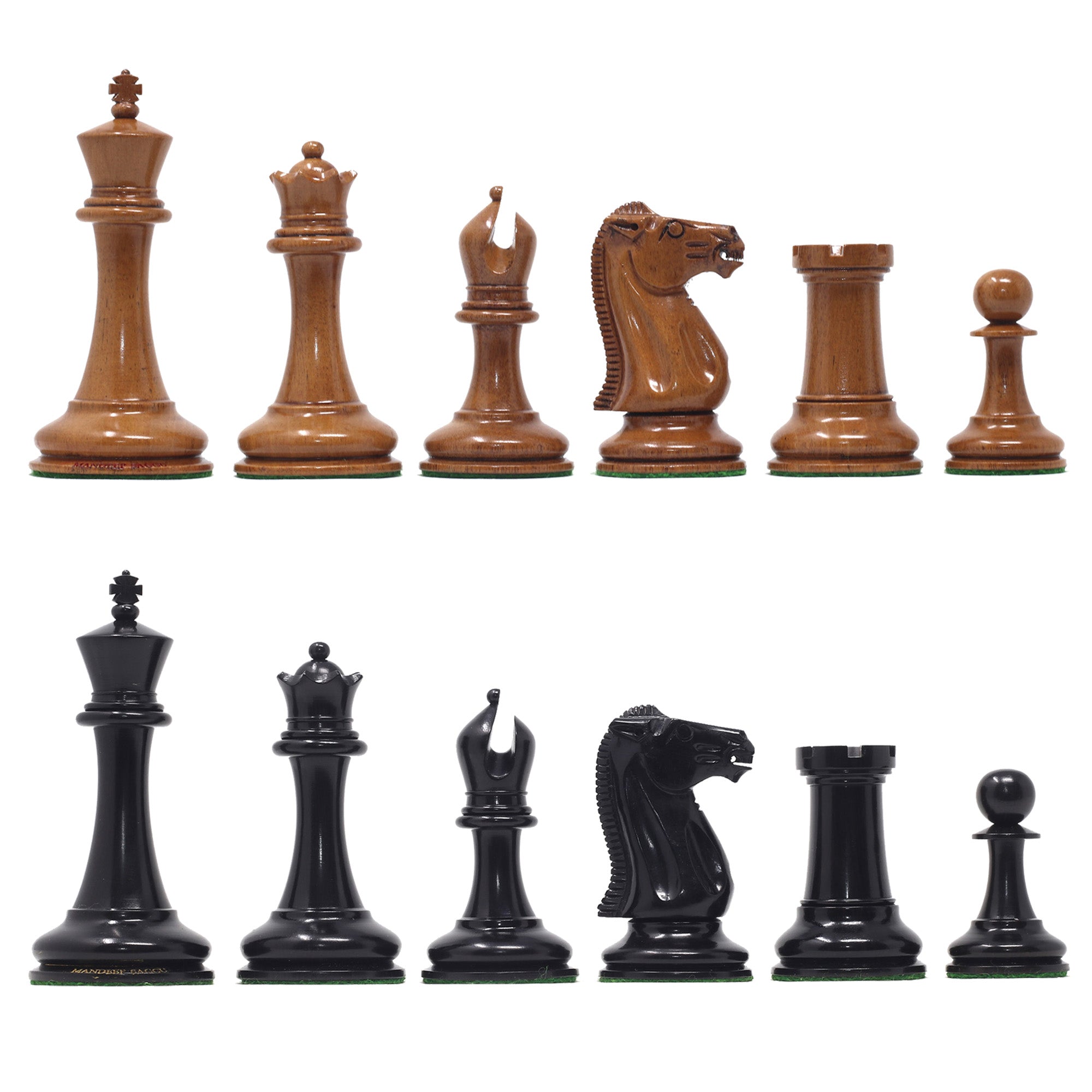 THE CHESSMEN Staunton Castle is glad to offer its dynamic masterpiece - The Leuchars Timeless Series Chessmen. It is a part of our excellent Collection It is an exact recreation of the Jaques of London Chessmen Circa 1849 Leuchars Staunton Pattern Chessmen. These Chessmen feature a 3.6" King with a 1.7" Diameter base and are heavily weighted. These Chessmen are a specific match to the original Chessmen, be it its smallest details!! Staunton Castle has reproduced the essence of these glorious Chessmen and made them available on a very limited basis. The Leuchars Series exemplifies a best combination of distinct beauty and functionality. It has been designed to withstand the rigors of practical play while maintaining an elegance which has become the hallmark of a Staunton Castle chess set. The design, quality and craftsmanship of this set is unique by any set of Chessmen in its price range. Nothing even comes closer to it. The chessmen are new and each set consists of 34 Chessmen, including four Queens, a standard that was introduced by Staunton Castle. The Chess Set comes with Certificate of Authenticity by an original manufacturer's Mr. Mandeep Saggu. This beauty becomes the brand ambassador for Staunton Castle. Here is your opportunity to purchase an exact reproduction of these legendary Chessmen, in immaculate quality, for a fraction of the price!